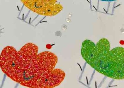 Coloured sparkles that are printed mostly on children books, packaging products, greeting cards to add a brilliant shine on it.